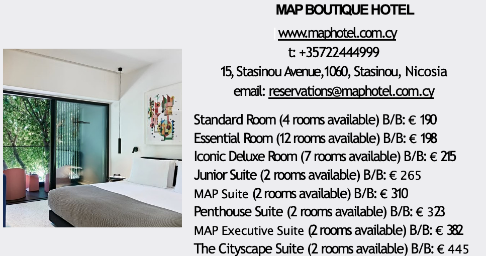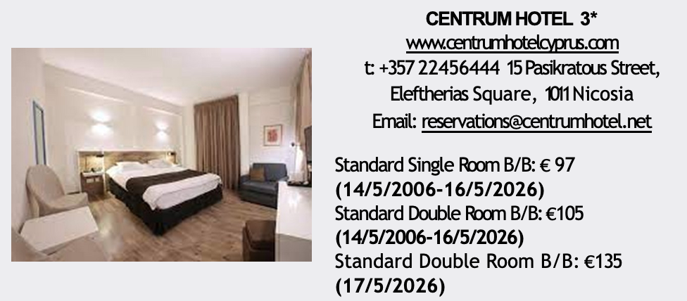 Considering that Cyprus will assume the Presidency of the Council of the European Union in the first half of 2026, all interested participants are encouraged to make their reservations at the earliest of their convenience, as it is expected that Nicosia will attract many visitors during this period.